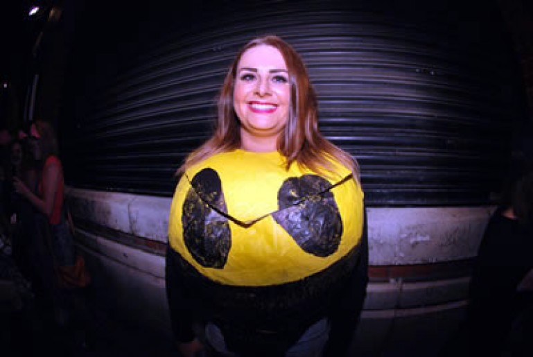 Is she a Bee..? Does she have a yellow pumpkin torso..? She is stunningly happy & contented with her look but we are mystified...?