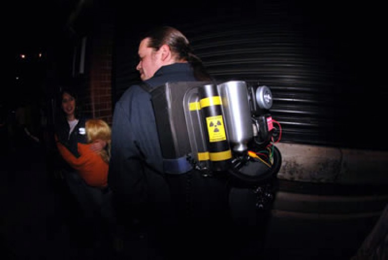 Is he a Ghostbuster..? If so, his suit is the wrong colour... We think he is maybe something else altogether... Like a daft plum...