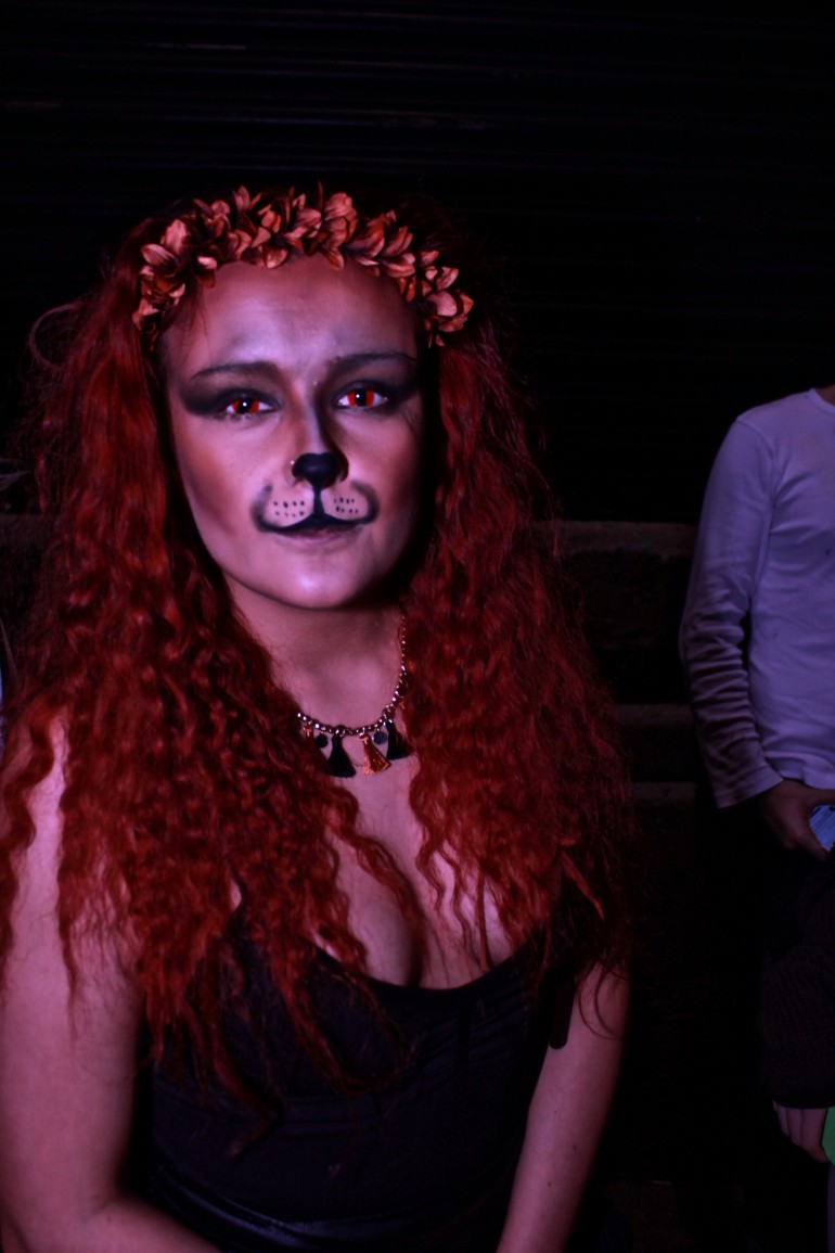 Yes, it's technically another pants cat, but execution wise she's playing to the strength of her auburn mane & seems to have put a little more effort in this, applying some of those ridiculous lenses, that while usually, we think are overkill, seem to work here... We can't tell if she's in full body paint or if that's just trickery from our camera Chimp's dodgy purple lens... Either way, we still think more effort is required to achieve maximum points for true spookdom...