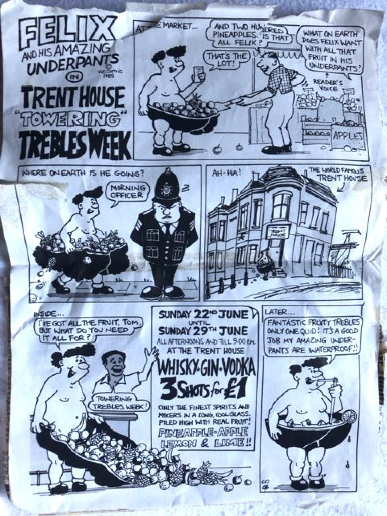 We always got cheap advertising in the comic for the Bar, through Chris & he also hand drew all our World Famous Trent House flyers & much of the publicity we produced.