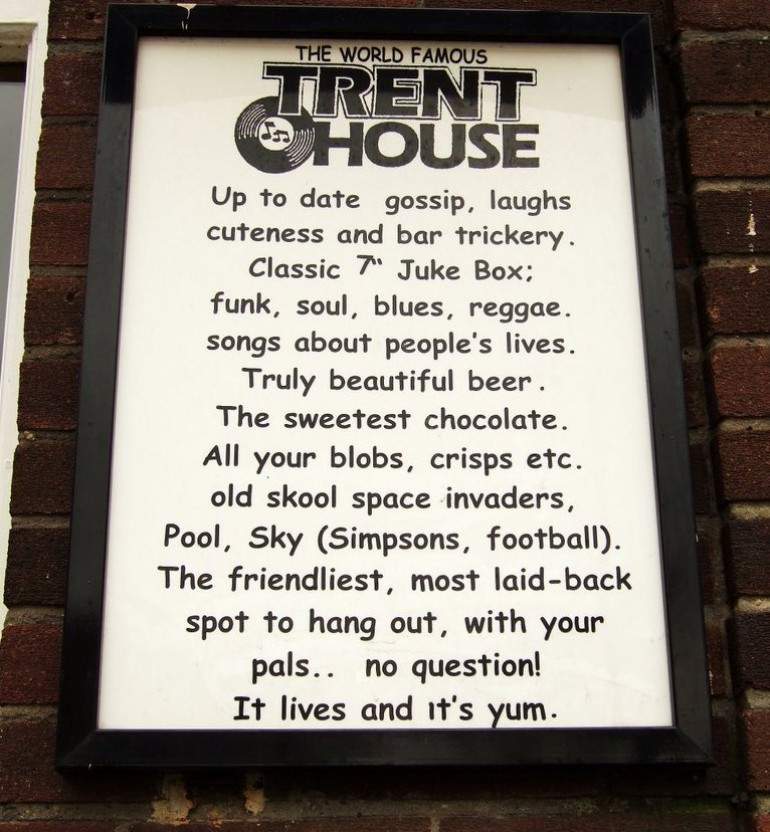 We took the mickey a bit, as it was so small inside & we started to refer to it as the 'World Famous Trent House.' This was just for a bit of a hustle, to give the impression to people who didn’t know it, that it was some kind of big deal.