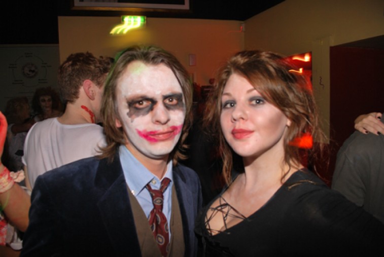 We think he’s come as the Joker, but just his face alone ain’t gonna win him this baby. Must try harder next time. Now she must have a hidden inner evil or something, cos we can’t see anything spooky about her at all…?