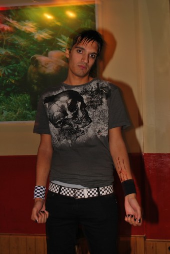 Or is it a costume? Nice touch with the self harm, slightly weak on the fringe.