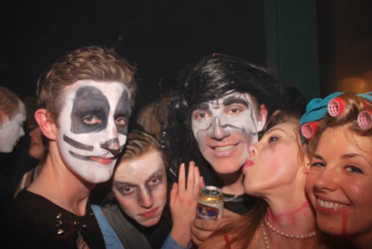 Hanging out with Zombie Eena & Zombie Hilda. Spooky, odd & well into the spirit of things. Possibly meant to be Gene Simmons & co from the cock rock band Kiss?