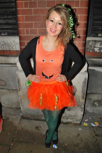 This is a home-made effort & the little face is laugh out loud. It’s a confident pose, with the crossed legs & the arms akimbo & she’s obviously very proud of her achievements, as well she should be. Despite the fact she looks like she could be in Bucks Fizz & in some 80s Halloween time warp, she just seems so pleased with herself & her funny little outfit that you can’t deny it’s somewhat endearing. Bless x.