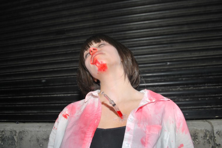 You all know the scene, John Travolta’s drug dealing pal whacks a syringe of adrenaline, through Uma Thurman’s breastplate. Nice choice, bit pink on the blood, but the passed out eyes work, even though she’s omitted all of the the snot & dribble, that was such a centrepiece of the movie scene.