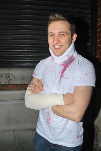 This pathetic attempt at a Zombie has been put at the top here, in order to highlight the disparity between this lame, happy-go-lucky chancer, his half-baked Ribena antics & the absolute masterpieces of Zombiedom that lie ahead for you, within this category. This man is lame & in true Zombie spirit should have his heed smashed open with a rock. We guarantee you, should he ever turn up here again in such a low budget Vimto based costume, that is exactly what shall happen...We shall personally see to it. 31-hurt my neck stealing the ribena