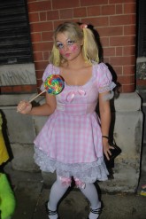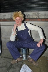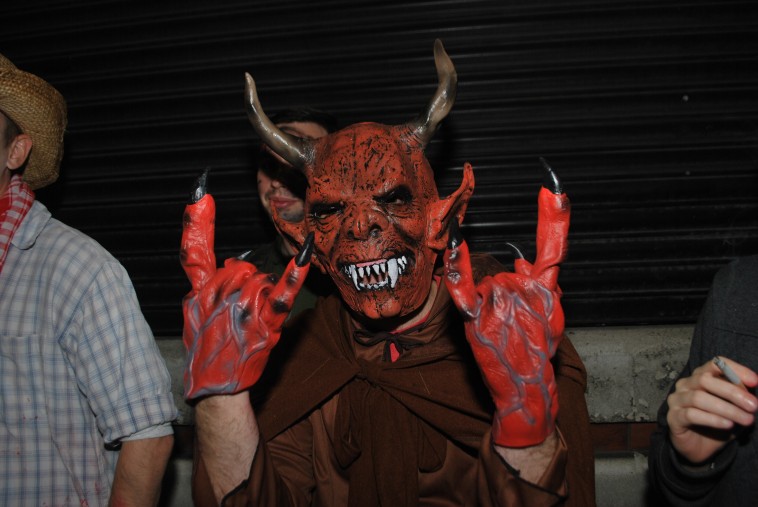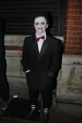 So often, we see a natural born Werewolf (check those arms), wasting a genuine naked posing opportunity, on shop bought twaddle. There are much, much better masks on sale in this city than that. Spookyish, but low budget with it. Please play to your hairy little frame next time.