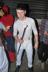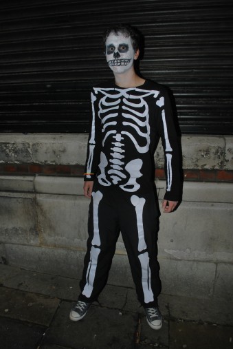 Surely he could have made a coupla little black spat type thingys with bones on to cover his shoes? Marks for blank staring expression, but loss of marks for lack of dedication in the foot dept.