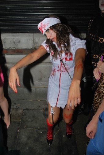 One of the best poses of the competition, an effortless hang, arms any Mummy would be proud of, lop-sided head (slashed throat, hopefully, covered by hair), Witches’ tights into the bargain & a high octane vacant stare. Here she has taken the basic elements of spookdom & blended them together nicely, in a highly successful montage.