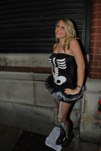 It's a cool look positioned unashamedly on the glam side as opposed to the spooky. Doubt she can win any prizes for being scary, but she doesn't look that bothered & that doesn't really seem to be her vibe. She seems a pleasant lady & as such, we reckon she's probably more interested in steering clear of the young skeletons numbered 1,2 & 3 above.
