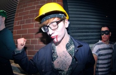 Given the merciless, mass genocide, in which cowboys brutally massacred the Native American population, rendering almost an entire human genus extinct, they qualify as appropriate competition contenders, via the truly dark, torturous & deeply evil side of Halloween. On a more light-hearted note, his little, inflatable Burro kicks ass...