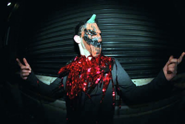 Homemade Pumpkin mask & a bit of last years Xmas decs combine here, in a bold & refreshingly punk attempt to sway the electoral process. Messy..? Yes. Inspired..? It may well just be...