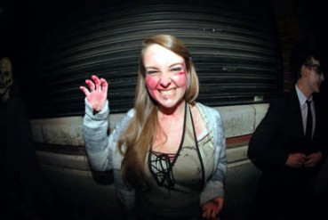 The staff of the Club having a spook out. Top marks go to Cree at the front with her sideways lunge of stare, which just trumps Davids Frankenface...