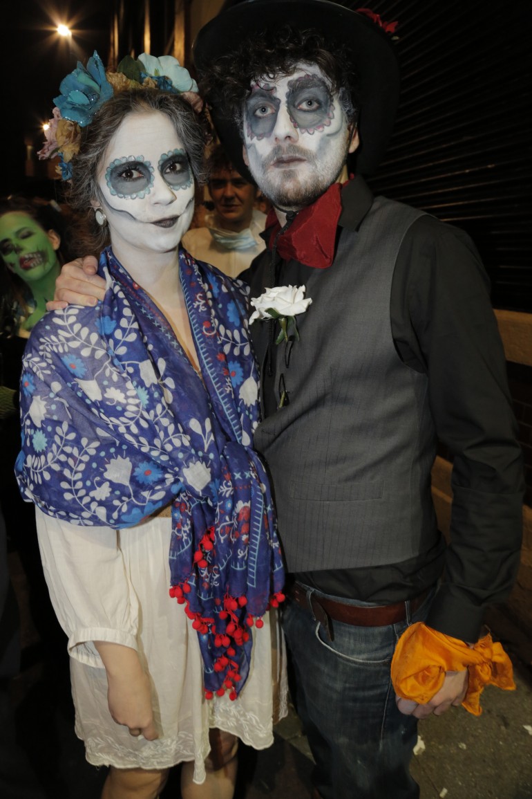 These two are equally feirce, liking her shawl, that's an authentic touch. Is that an afro or a hat he's sporting..? We can't really tell.. If it is a little afro then he's nailed zombie Prince.