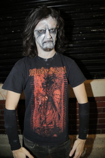 No, It can’t be, he hasn’t got his tongue out. Maybe just a goth then..? Why has he got socks around his arms..? Your guess is as good as ours…