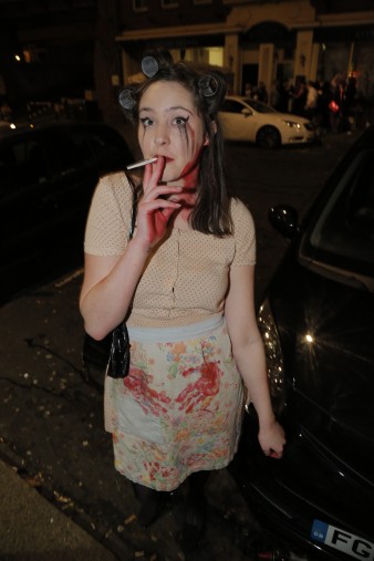 Here we have another Dot Cotton wannabe (it's actually young Billie who used to be mangeress at WHQ) flaunting a superking, with bloody hand prints on her apron...