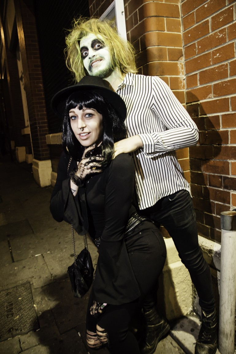 An accurate re-enactment of the classic film, with beetlejuice’s facial expression & tres authentic beetlejuice-esque shag hair almost completely making up for his hilarious panda eyes…