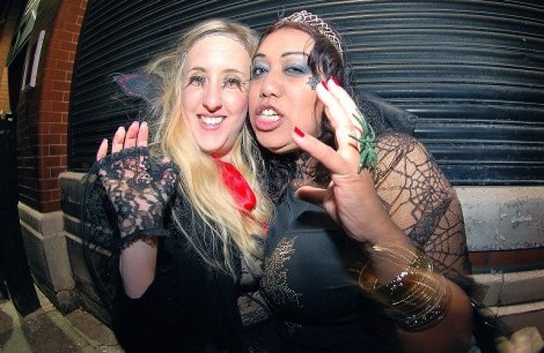 These two ladies are either being a coupla night-flight broomstick riders without hats (or broomsticks, for that matter), or some kind of evil faeries..?